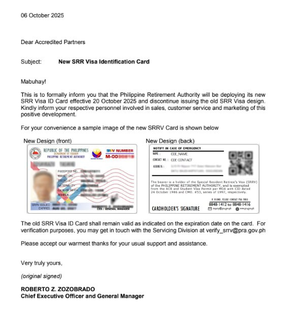 SRRV签证由菲律宾退休署(Philippine Retirement Authority, PRA)签发与监管。持有人需每年完成年度报告(Annual Report),缴纳小额管理费,并保持账户资金在指定银行中。PRA负责签证延续、卡片更新及服务监督。SRRV制度已经运行40余年,是菲律宾政府最成功的外籍居留项目之一。