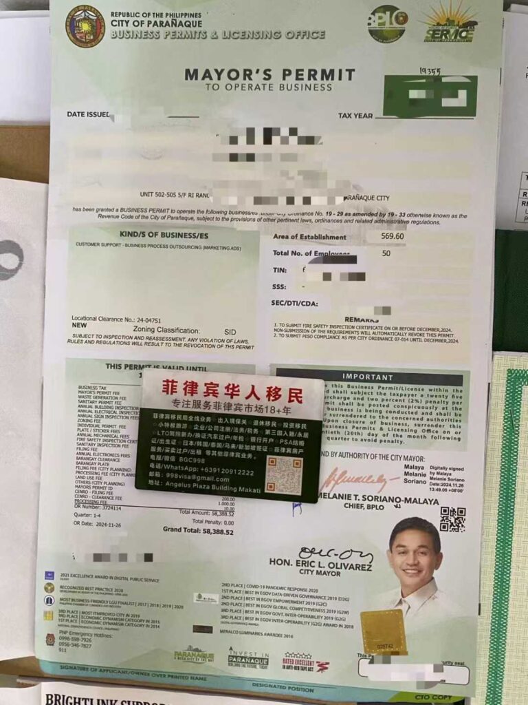 • BIR、Barangay、Mayor’s Permit申请:7–15个工作日;
